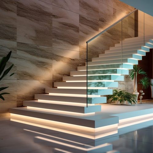 Using glass railing design in staircases creates a striking visual effect. It adds a modern touch to interiors and allows light to flow between different levels of the home. Combining glass with wooden handrails can create a warm yet contemporary look.